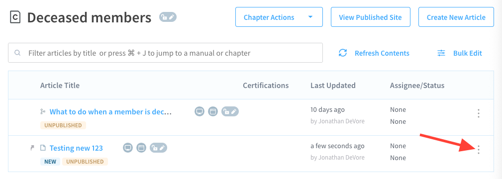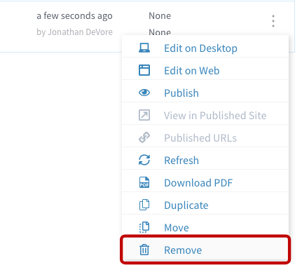 Navigate to the article to remove > Click the Action Menu